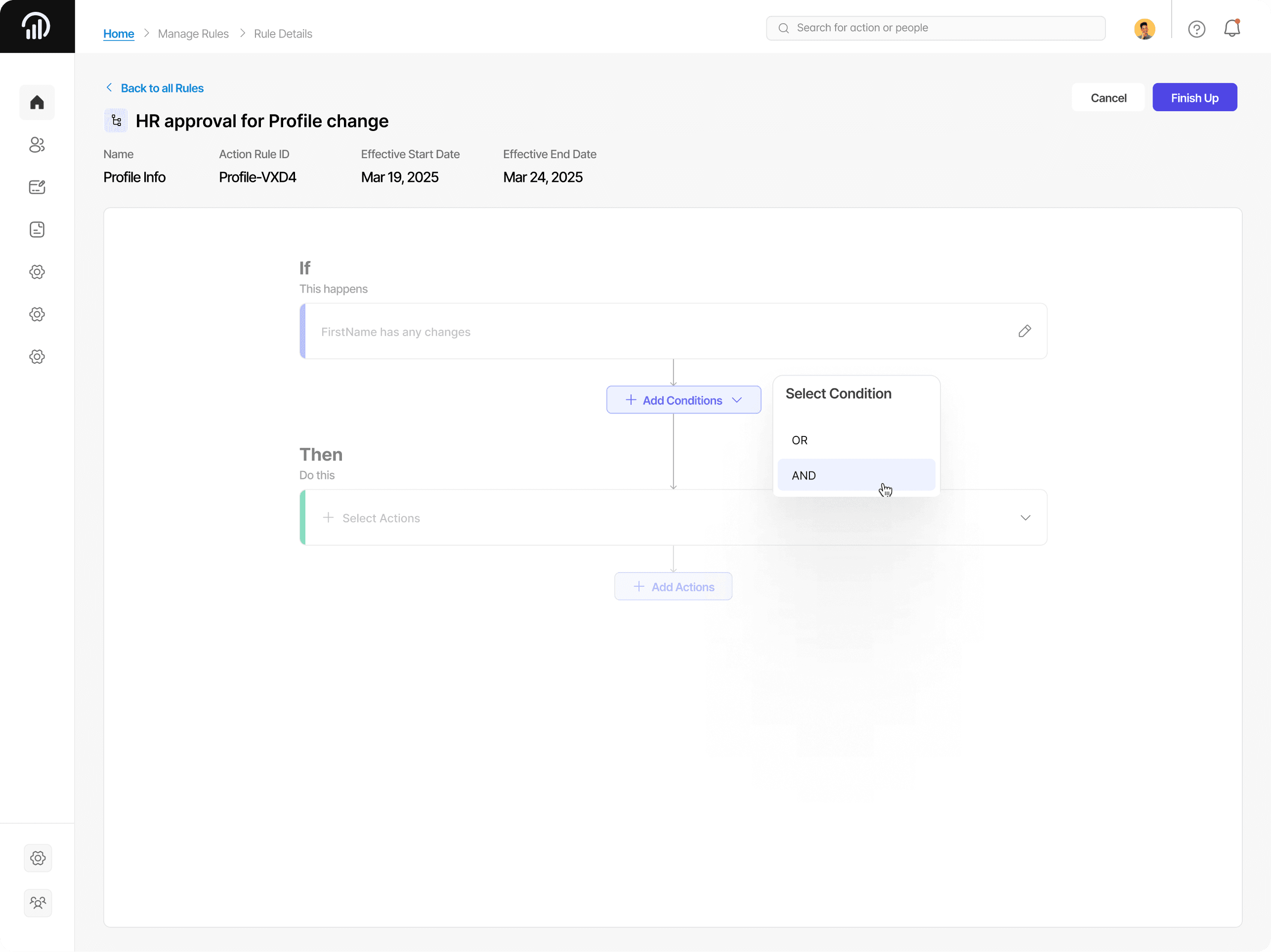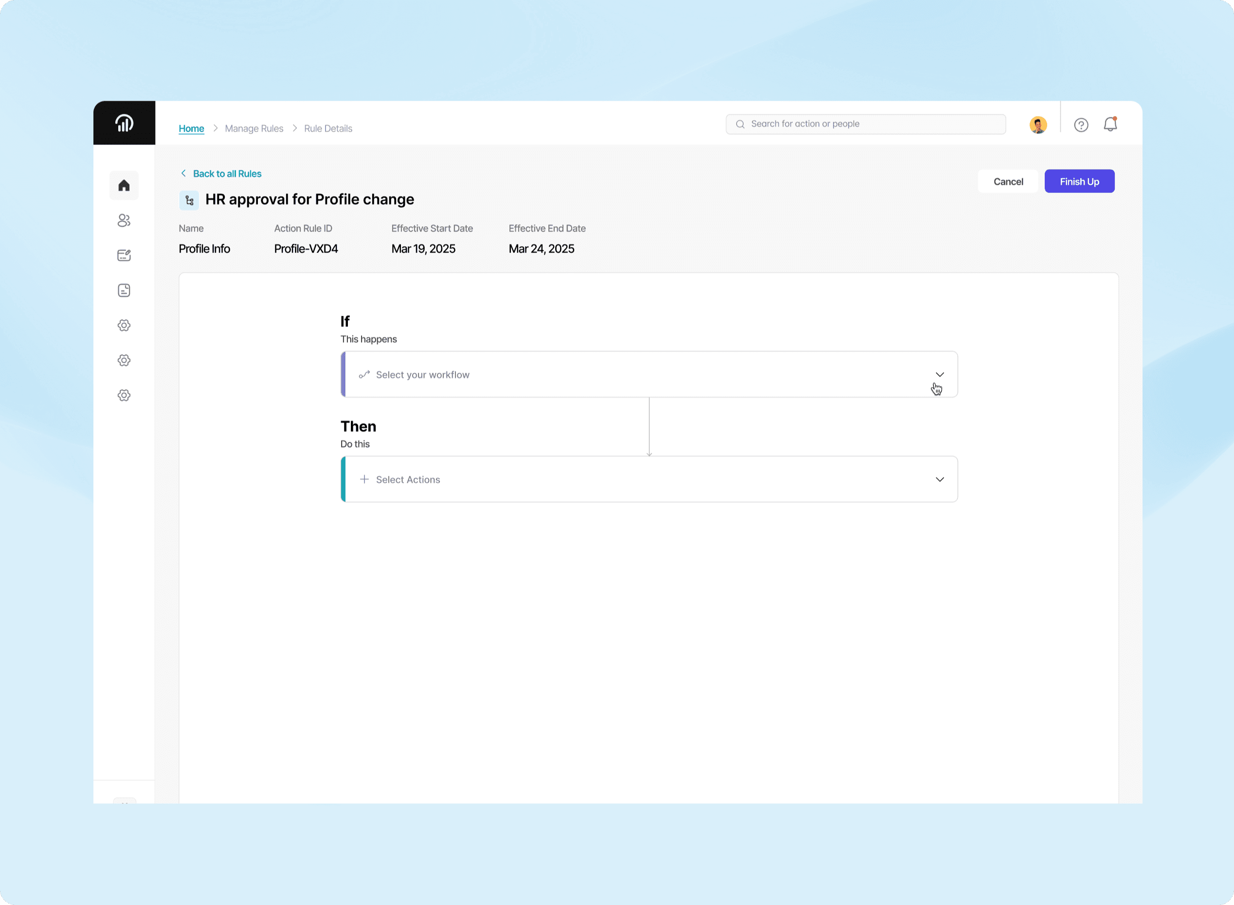 PeopleFusion Automation Builder makes it easy to create and manage automations across HR, Payroll, and Core systems, using a no-code rule builder for everything from simple approvals to multi-step workflows — all governed with version tracking for transparent, reliable execution at scale.
