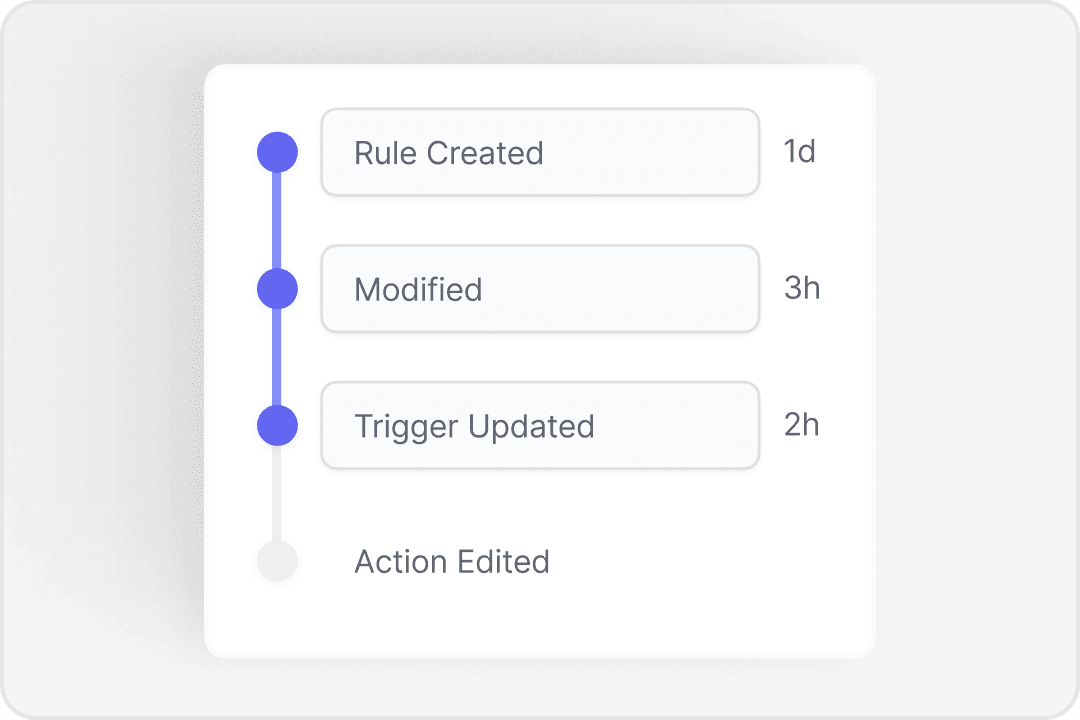 Audit & Version Control — Track every rule creation, modification, and execution for complete traceability.